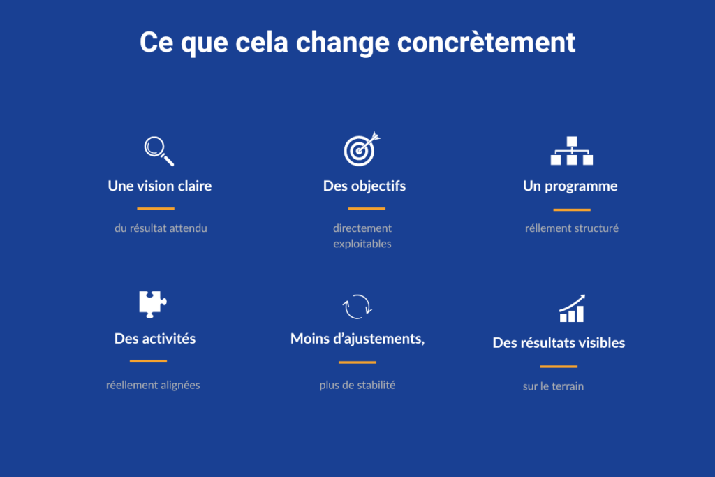 Vous ne repartez pas avec un modèle à appliquer, mais avec un dispositif que vous comprenez, maîtrisez et pouvez faire évoluer.